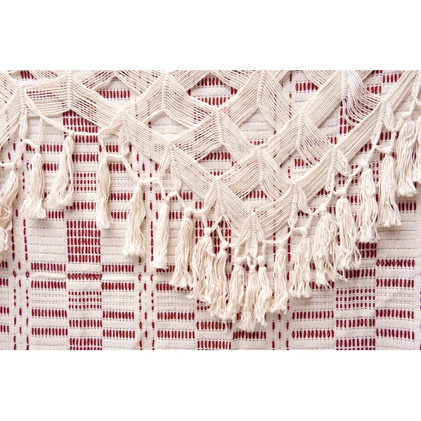 Tradizionale artigianato macramè e bordo ornamentale annodato a mano come alto light ottico.