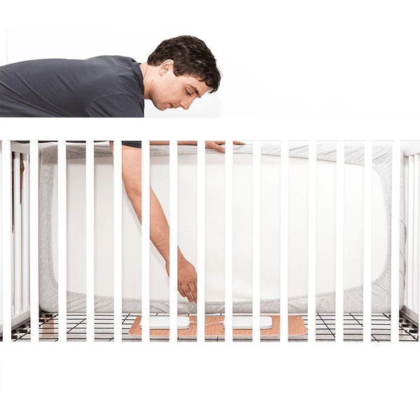 - Adatto a tutti i materassi da culla disponibili in commercio (tranne Memory schiuma, fibra cava, materassi ad aria, letti ad acqua e letti fissati al letto dei genitori)