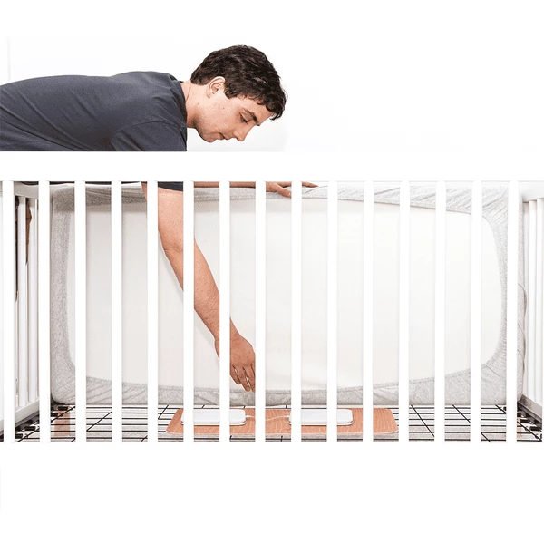 Poiché i 2 tappetini sensori si trovano sotto il materasso, il bambino non ha alcun contatto diretto disturbante con il dispositivo di monitoraggio.