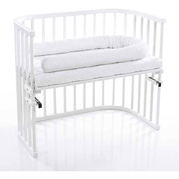 In questo aiuta il paracolpi di babybay: posizionatelo nel lettino attorno al vostro bambino per farlo sentire sicuro durante il sonno. Il paracolpi protegge anche la testa dai lati duri del letto. E, perché no, si può anche usare come para-spifferi o per proteggere dagli angoli.