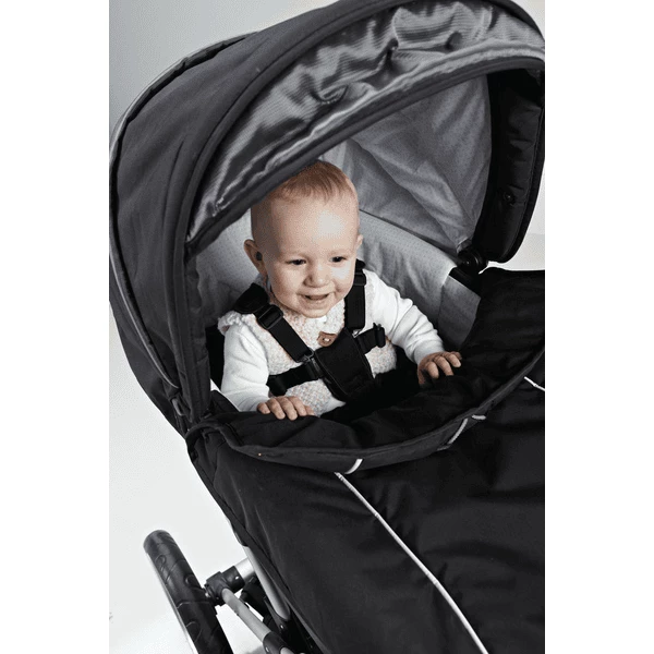 Fissaggio al passeggino tramite ganci a clip Il bambino può essere allacciato
