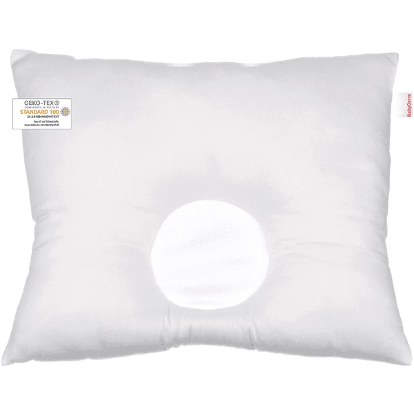 Il cuscino per neonati con il cuscino cavo per una testa sana e rotonda. Con l’incavo per la testa ® aiuta BabyDorm a migliorare l’appiattimento della testa in funzione della posizione. La testa galleggia sopra il materasso senza pressione. Certificato secondo OekoTex Standard 100. Lavabile in lavatrice. Con bella copertina in blu con dinosauro.