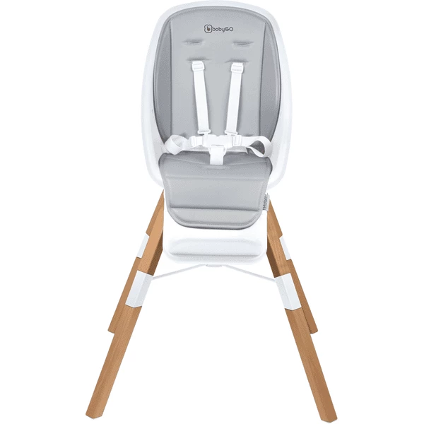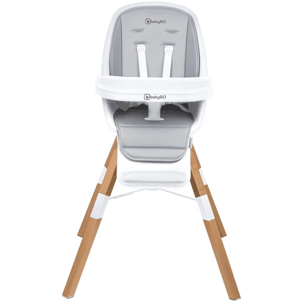 Un seggiolone come il modello Carou di babyGO devono soddisfare requisiti elevati. Offre al bambino un posto sicuro al tavolo e segna punti con un elevato comfort di seduta. Il seggiolino è morbidamente imbottito e un’imbracatura a 5 punti regolabile in dimensioni offre la massima sicurezza per il bambino. Affinché il seggiolone possa crescere con il bambino, il poggiapiedi può essere regolato a tre diverse altezze con pochi semplici passi e senza attrezzi. Il poggiapiedi può anche essere completamente rimosso.