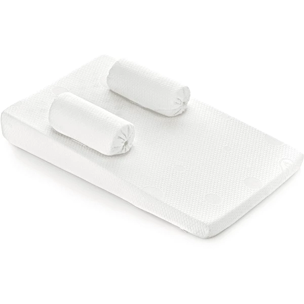 Inoltre, il cuscino ha due cuscini a cuneo più piccoli che vengono utilizzati sul lato sinistro e destro del bambino. Dovrebbero tenere il bambino in posizione laterale sostenendo la schiena e lo stomaco. Secondo la scienza, la conservazione laterale può anche contrastare il riflusso e il vomito in generale. Inoltre, la posizione laterale è adatta ai bambini per evitare deformazioni o appiattimento della parte posteriore della testa. babyJem Per evitare cuscini di riflusso, il rivestimento traspirante e lavabile ha una struttura diversa sul lato inferiore rispetto al piano trapuntato.