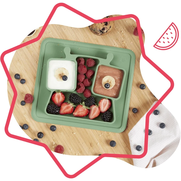 Con le sue 3 sezioni e la capacità di 350 ml, il bambino si divertirà a conoscere i sapori di cibi e consistenze diverse.