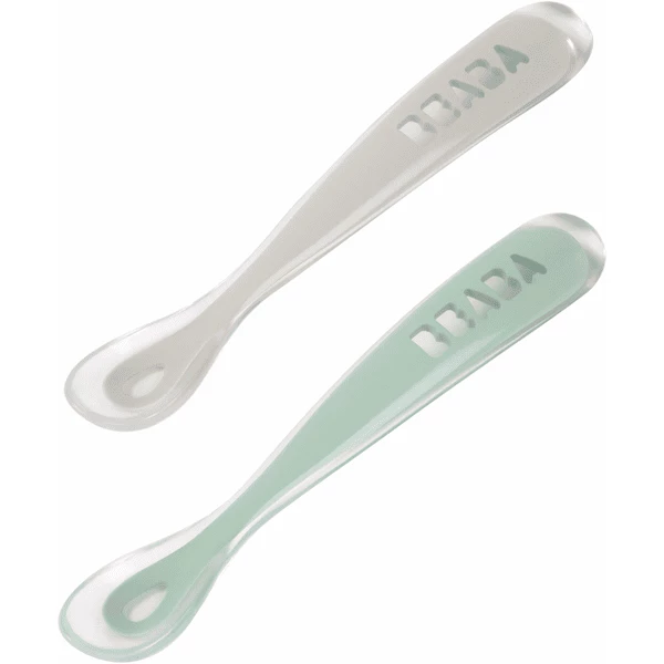 BEABA ® Set di 2 cucchiai in silicone per la seconda età, velvet grigio/verde salvia