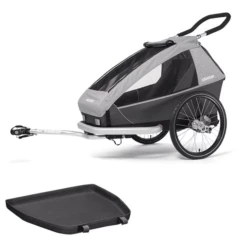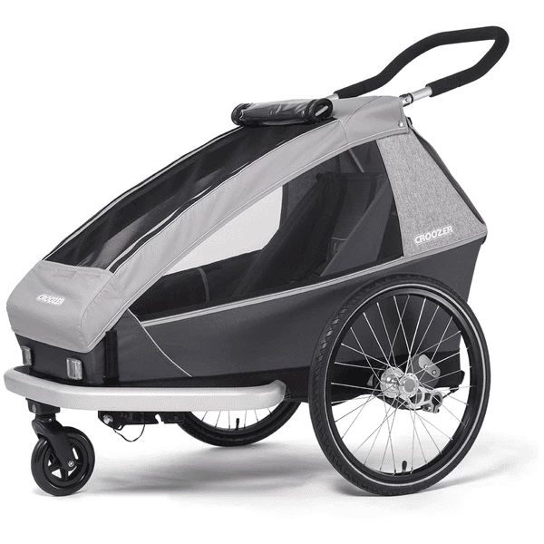 CROOZER Rimorchio per biciclette per bambini Kid Keeke 1 con tappetino protettivo per i piedi, grigio