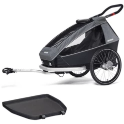 CROOZER Rimorchio per biciclette per bambini Kid Vaaya 1 con tappetino protettivo per i piedi, blu grafite