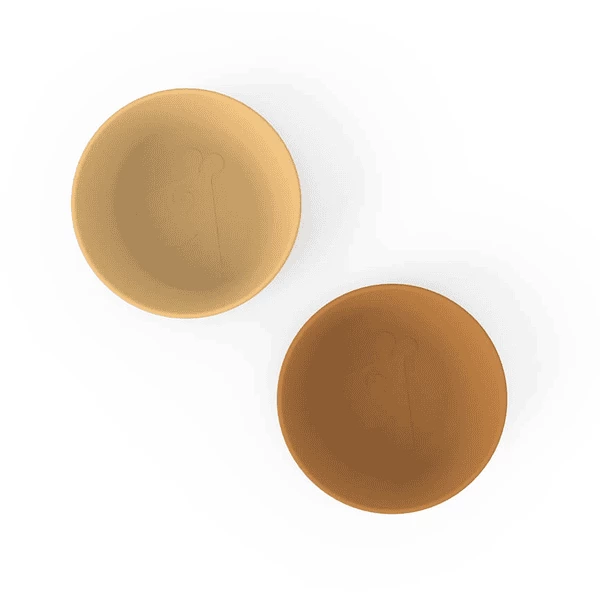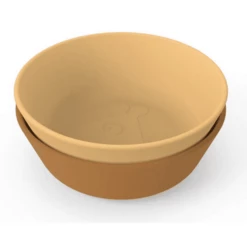 Il dolce Raffi ci guarda dalla pratica ciotola Kiddish in giallo senape. La ciotola Kiddish ha una superficie opaca e setosa ed è di dimensioni perfette per i bambini che iniziano a esplorare il mondo del cibo.