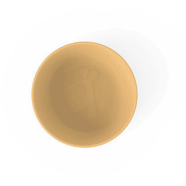 Il dolce Raffi ci guarda dalla pratica ciotola Kiddish in giallo senape. La ciotola Kiddish ha una superficie opaca e setosa ed è di dimensioni perfette per i bambini che iniziano a esplorare il mondo del cibo.