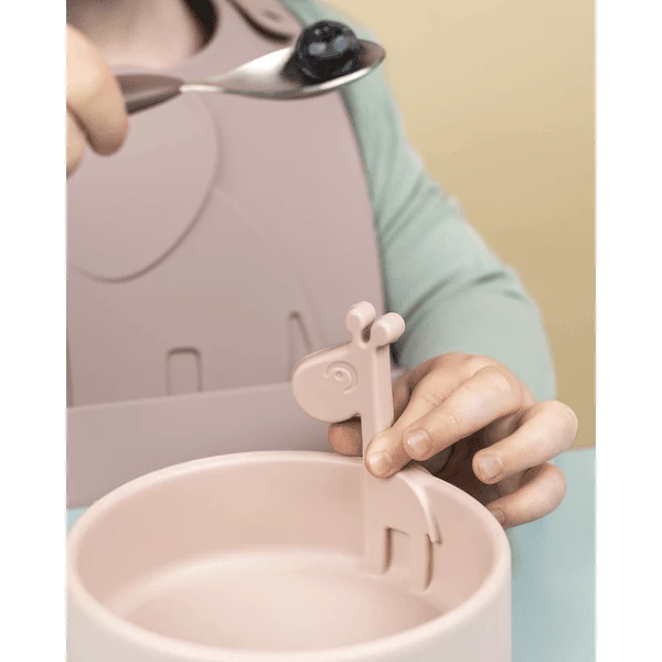 Peek-a-boo, è ora di mangiare! Raffi fa capolino dalla simpatica e pratica ciotola in silicone, pronto a rendere il momento del pasto un momento extra divertente della giornata. Con un’altezza elevata e bordi interni arrotondati, la ciotola è ideale per facilitare la raccolta man mano che il bambino impara a mangiare da solo. La simpatica ciotola è realizzata in silicone alimentare, che la rende infrangibile e adatta a microonde, forno, congelatore e lavastoviglie, oltre ad avere proprietà antiscivolo. La ciotola in silicone resistente è perfetta per riscaldare i pasti del bambino. I piccoli si divertiranno ad avere la simpatica giraffa con loro mentre mangiano – e attenzione, i colli lunghi sono perfetti per rubare un morso. La pratica ciotola è disponibile in una tonalità rosa tenue che si abbina alla collezione di stoviglie Peekaboo e viene fornita in una graziosa scatola regalo decorata.