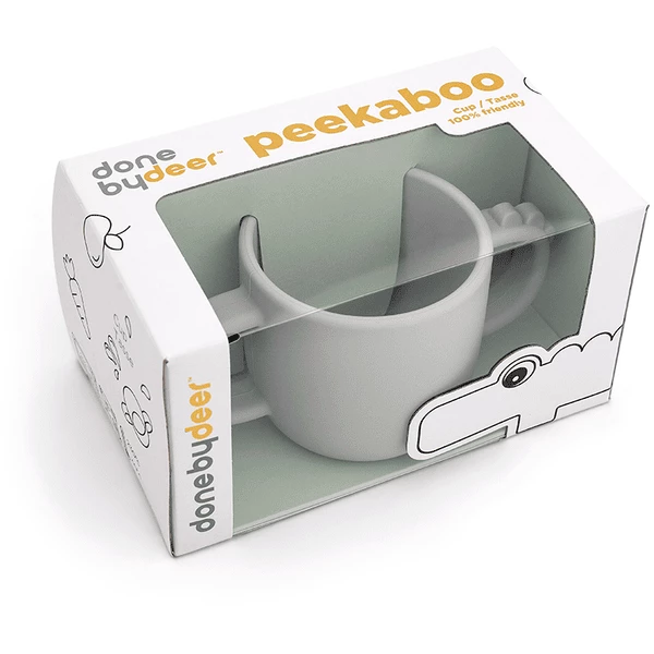 Cuckoo, è ora di bere! Croco fa capolino dal fondo della tazza in silicone, pronto ad aiutare i più piccoli a fare i primi sorsi. La tazza a due manici è della dimensione e del peso perfetti per le piccole dita da tenere comodamente. Realizzata in silicone alimentare, la pratica tazza è infrangibile, adatta a microonde, forno, congelatore e lavastoviglie e ha caratteristiche antiscivolo e di facile presa. I più piccoli possono imparare a bere da una tazza aperta – scoprire Croco sul fondo della tazza e sentire le squame del coccodrillo sul manico. La tazza è una morbida tonalità di grigio per abbinare la collezione di stoviglie Peekaboo e viene fornita in una scatola regalo splendidamente decorata.