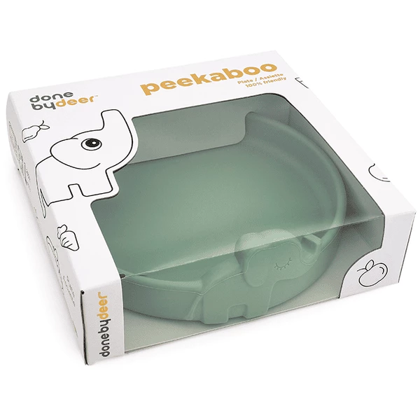 Cucù, è ora di mangiare! Elphee fa capolino dal lato del pratico piatto in silicone e rende l’ora del pasto un momento particolarmente divertente della giornata. Con i suoi bordi interni arrotondati, il piatto è ideale per una facile raccolta mentre i piccoli imparano a mangiare da soli. Il simpatico piatto è realizzato in silicone alimentare che lo rende infrangibile, sicuro per microonde, forno, congelatore e lavastoviglie e ha anche una caratteristica antiscivolo. La piastra in silicone resistente è perfetta per riscaldare i pasti. I piccoli si divertiranno ad avere il simpatico elefante con loro mentre mangiano – e attenzione, la lunga proboscide di Elphee potrebbe rubare un morso. Il pratico piatto è rifinito in un verde morbido per abbinare la collezione di stoviglie Peekaboo, e viene fornito in una graziosa scatola regalo decorata.