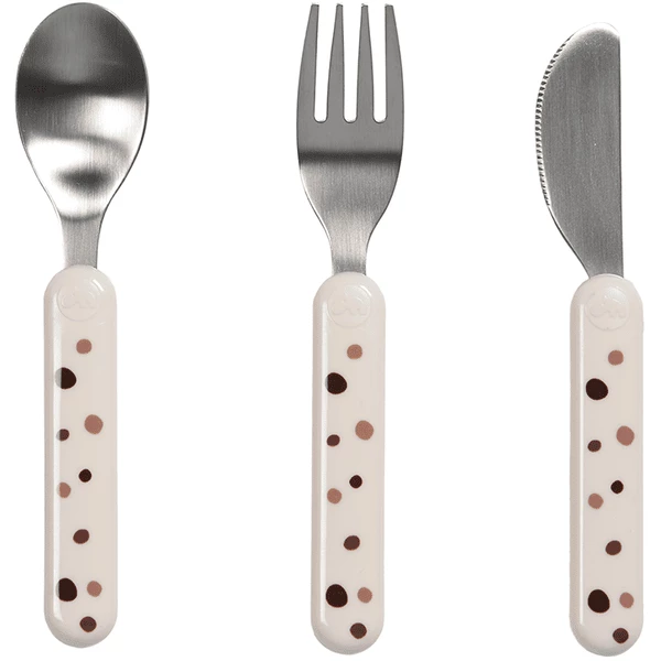da coltello, forchetta e cucchiaio in rosa con puntini dolci, per aiutare il tuo piccolo