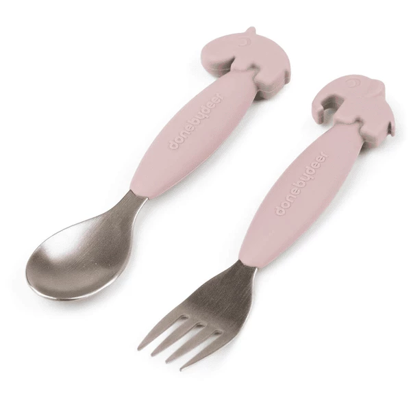 Done by Deer Set di cucchiai e forchette Easy-grip, Deer friends Pink