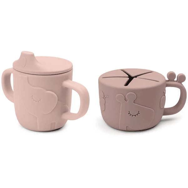 L’adorabile set di tazze rosa con la giraffa e l’elefante è realizzato in silicone alimentare, è resistente alla rottura, antiscivolo e facile da impugnare.