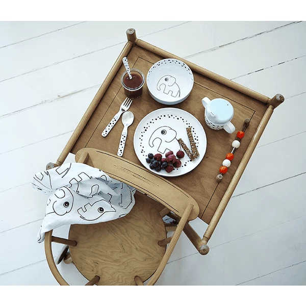 questo set di posate per bambini, sono disponibili piatti, ciotole, tazze e