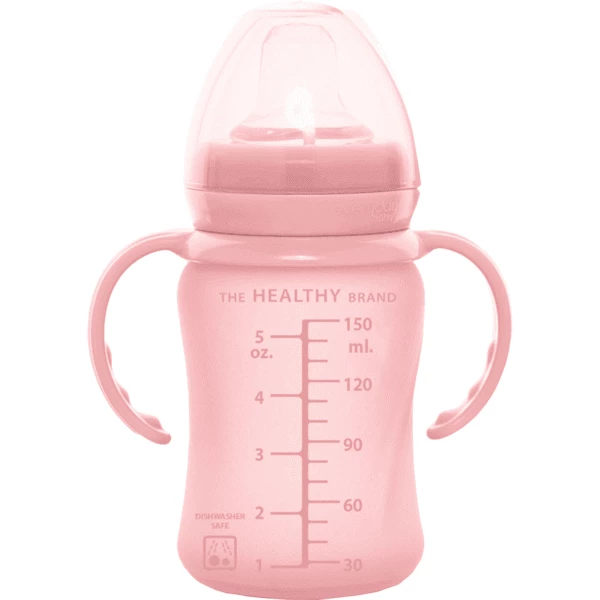 - Materiale: (bottiglia:) vetro, silicone; (tappo di protezione/anello a vite/maniglie:) polipropilene; (beccuccio/ciotola/cucchiaio:) silicone, acciaio inossidabile (manico interno del cucchiaio)