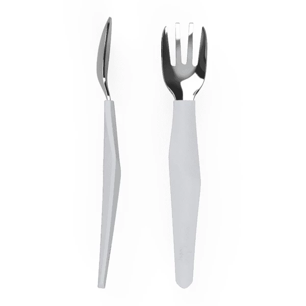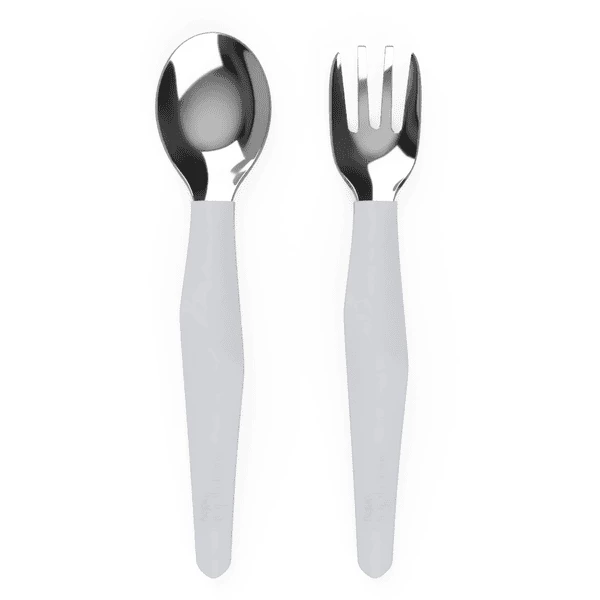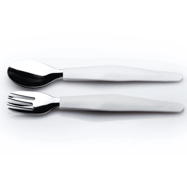 È il momento di imparare a mangiare da solo? Il Everyday Baby Eating Learning Cutlery consiste in una forchetta e un cucchiaio in acciaio inossidabile con un manico in silicone dal design intelligente. Il manico design aiuta i bambini a tenere le posate in modo naturale proprio come i grandi. Si adatta perfettamente alle mani dei bambini piccoli per aiutarli a imparare a mangiare in modo indipendente. Elegante Design . Realizzato con materiali di alta qualità: acciaio inossidabile e silicone.