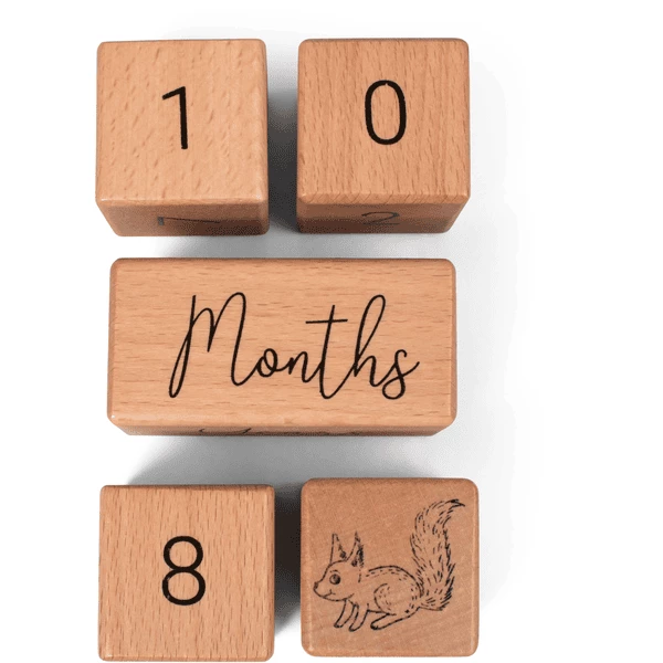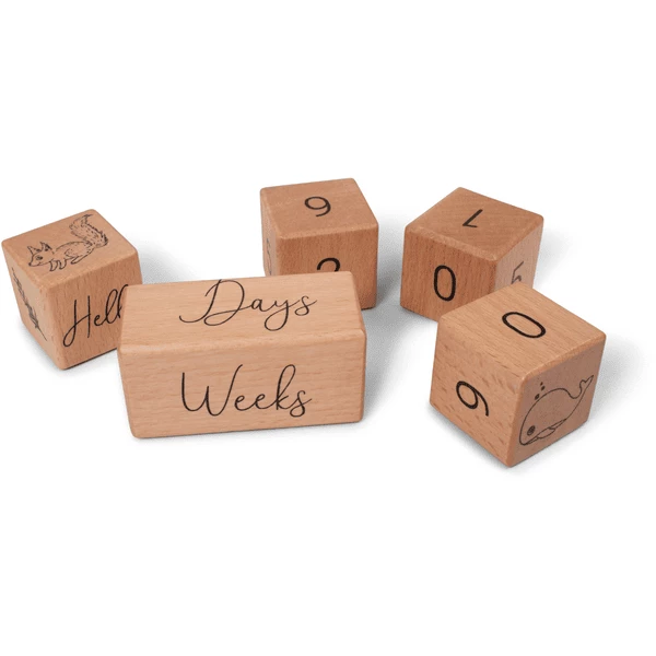 - I blocchi contengono i numeri da 0 a 9, “giorni”, “settimane”, “mesi”, “anni” e piccole illustrazioni.