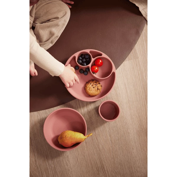 - Il piatto didattico è diviso in due ciotole più piccole e in un’area più grande, il che lo rende la scelta perfetta per il Baby Led Weaning (BLW).