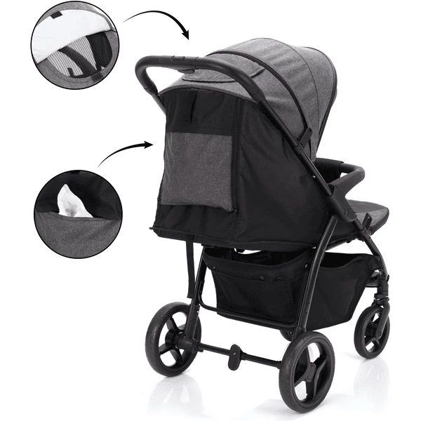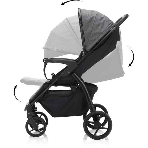 prossima uscita. Il lungo schienale regolabile consente di utilizzare il passeggino