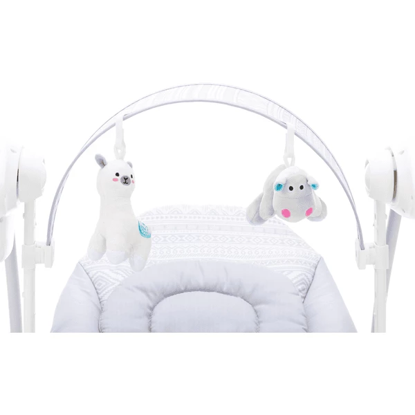 Si può utilizzare con il cavo (230V) in dotazione, o con 4 batterie C-LR14 (non incluse). Con la cintura a 5 punti, il tuo bambino dondola sicuro nella sua stabile altalena.