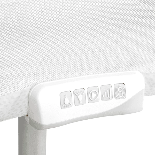 - Dispone di un centro calmante con luce notturna ambra, luce inferiore, 2 livelli di vibrazione e 4 melodie calmanti – il tutto con spegnimento automatico