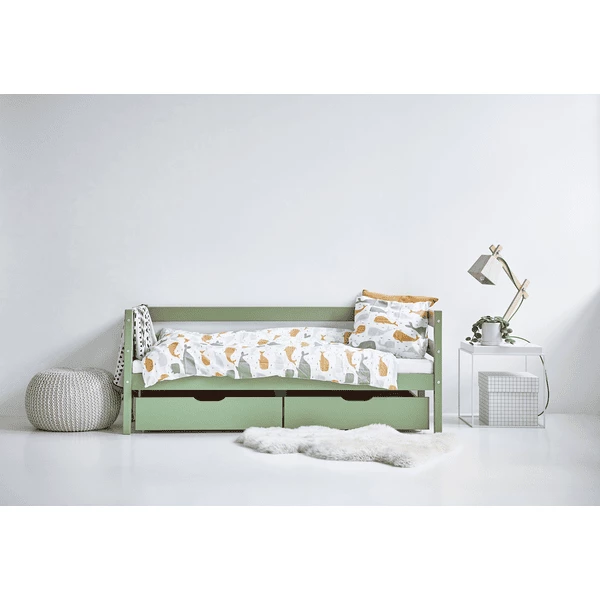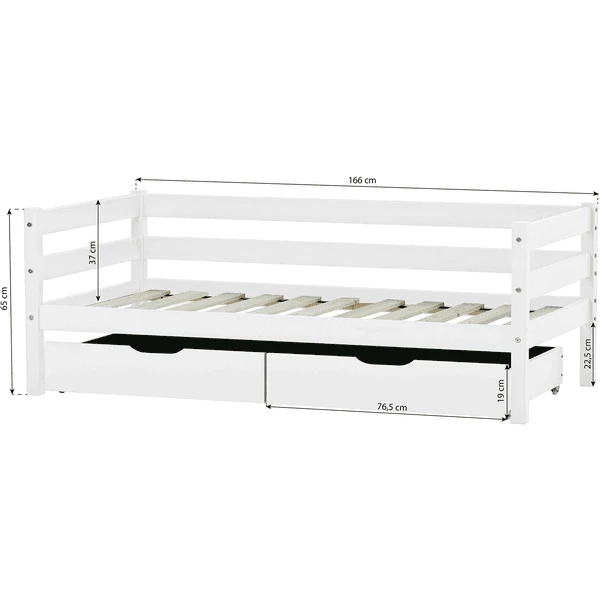 La superficie di sdraio di 70 x 160 cm è ottimale per stanze piccole o per bambini che non sono ancora pronti per un letto grande. È un letto carino e accogliente che può fornire al tuo bambino molti anni di sonno sicuro.