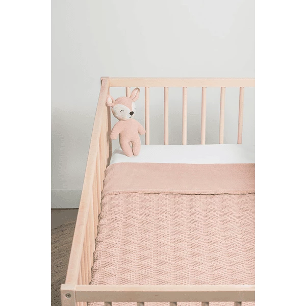 Dormi bene! Lascia che il tuo bambino sogni sotto questa copertina a maglia. Questa copertina ha una morbida struttura a forma di onde. Bella coperta a maglia con fodera imbottita della collezione River di Jollein. La copertina è in cotone e l’imbottitura in poliestere. Il valore TOG di questa copertina è a 1,8.