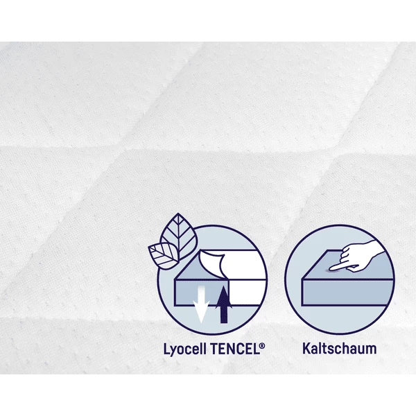Lyocell (TENCEL©) delicato sulla pelle, morbido e resistente. Grazie alla struttura in microfibra fine, l’umidità viene rapidamente assorbita e rilasciata nell’aria con la stessa rapidità. Fibre Lyocell: più assorbenti del cotone e anche durevoli. Con queste proprietà i rivestimenti garantiscono un perfetto equilibrio termico e una temperatura gradevole per il sonno.