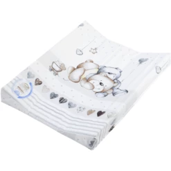 Materassino per fasciatoio a due cunei facile da pulire e con un simpatico design. La copertura esterna è realizzata con una pellicola priva di ftalati. L’interno è riempito con schiuma di polietere. La pellicola può essere facilmente pulita con un panno umido.