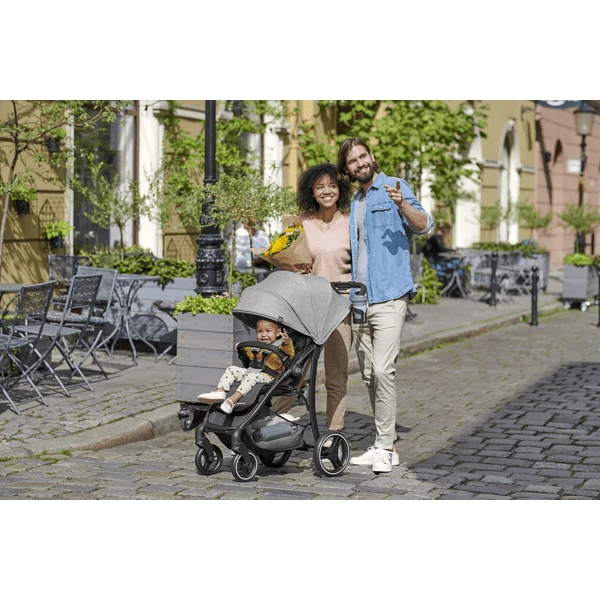 un meccanismo CLICK & FOLD che consente di ripiegare il passeggino con una