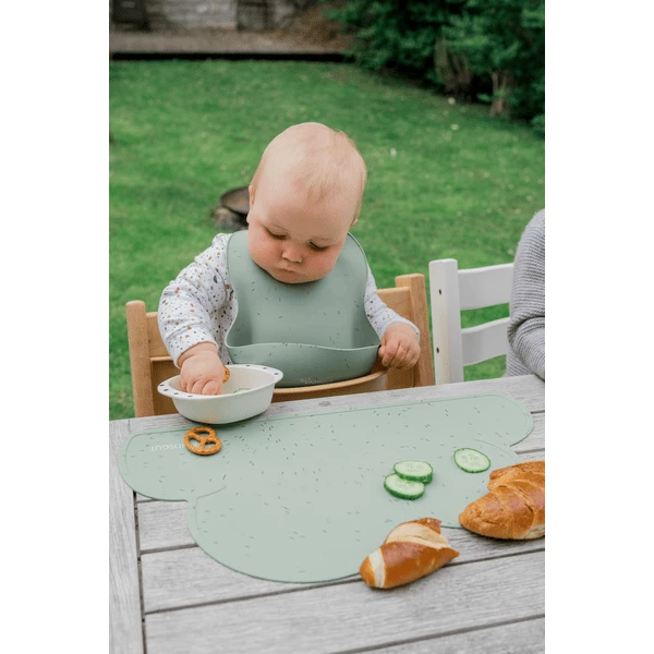 La tovaglietta è fatta di silicone ecologico e quindi offre una presa sicura e sostiene il bambino nell’imparare a mangiare da solo.