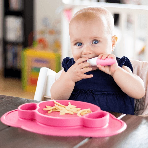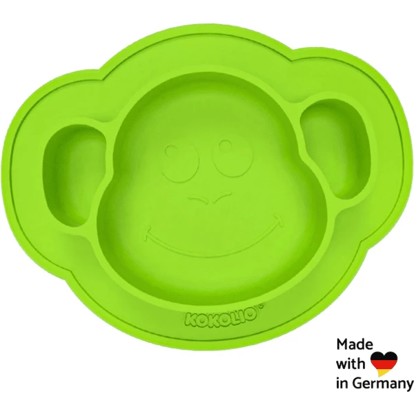 Nessuna fuoriuscita, nessuno scivolamento. Questo è Monki, il piatto antiscivolo per mangiare i principianti.