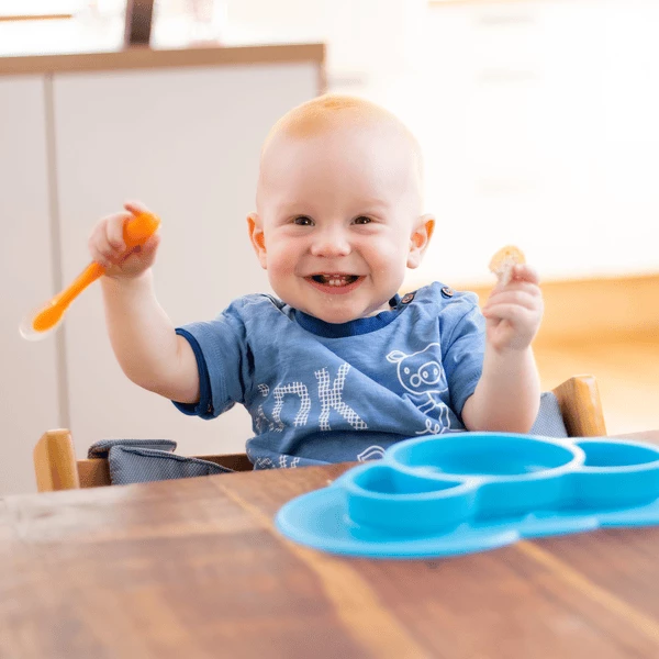 Nessuna fuoriuscita, nessuno scivolamento. Questo è Koali, il piatto antiscivolo per mangiare i principianti.