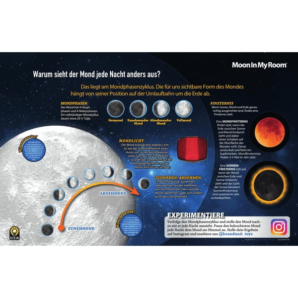 - Il poster didattico incluso vi aiuta con informazioni interessanti sulle fasi lunari, l’eclissi lunare e l’eclissi solare.
