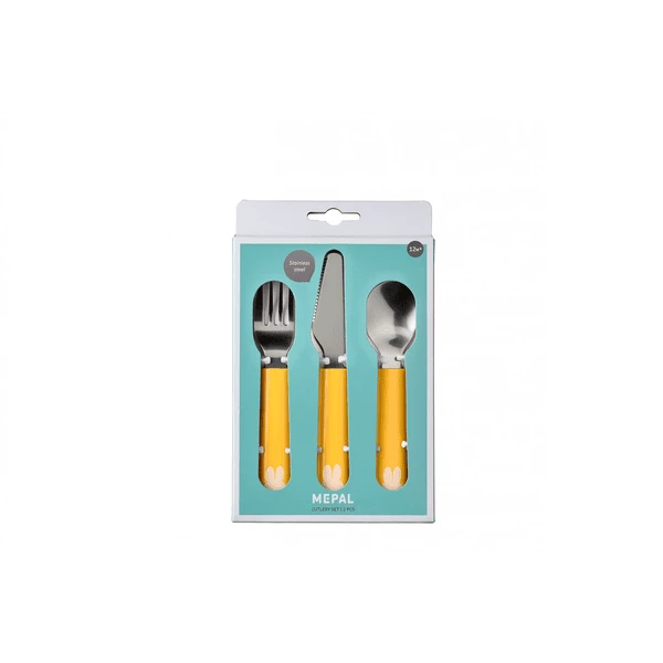 Il set di posate Mepal Mio nel Design Miffy Explore è ideale per questo. Il set è composto da una forchetta, un coltello e un cucchiaio.