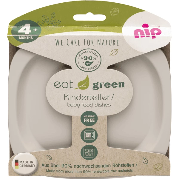 - La piastra Eat Green di nip è realizzata in plastica biobased con >90% di materie prime rinnovabili (carboidrati e oli vegetali (senza olio di palma; contenuto di carbonio biobased secondo ASTM D6866)).