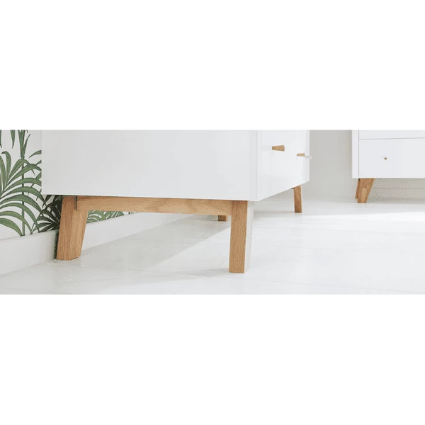 - Materiale piedi e pomelli: Rovere massiccio, laccato