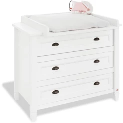 Con i suoi dettagli amorevoli, riproduce un’atmosfera accogliente da casa di campagna nella camera dei bambini. La base per il cambio può essere montata a sinistra, al centro o a destra ed è molto facile da rimuovere.