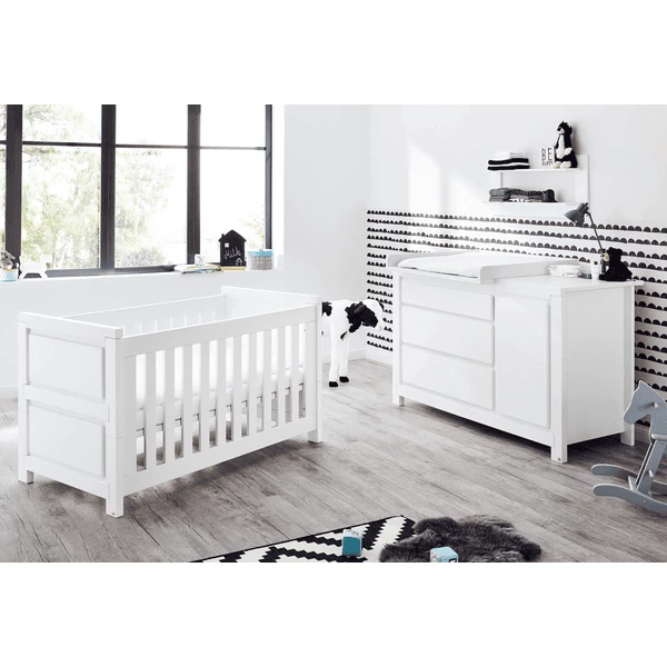Scopri tutti gli altri articoli della collezione Milk. La cameretta comprende una culla e un ampio mobile fasciatoio.
