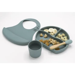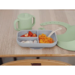 BEABA Set Di Stoviglie Diviso Piatto In Silicone + Cucchiaio