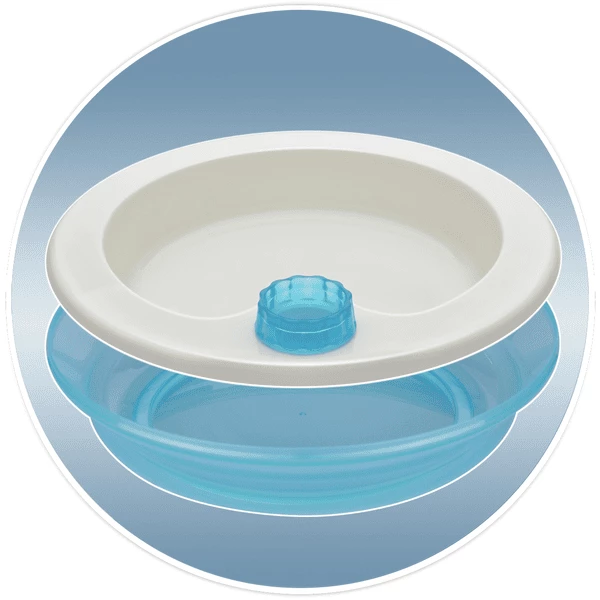 Questa pratica soluzione vi permetterà di non dovervi preoccupare che la pappa si raffreddi o di doverla riscaldare. Grazie al doppio fondo del piatto, il momento della pappa potrà durare più a lungo senza problemi.
