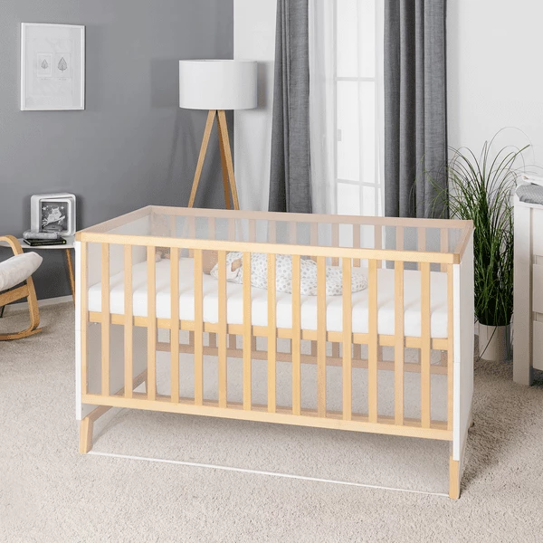 - Adattabile a tutti i lettini fino a 70 x 140 cm senza baldacchino o ai lettini da viaggio 60 x 120 cm.