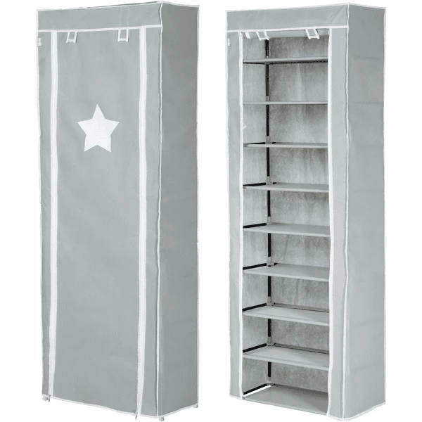 Se l’armadio in tessuto nella stanza dei bambini ha fatto il suo tempo, servirà ad esempio come ripostiglio e armadio per le scarpe nel corridoio, oppure come ripiano senza il rivestimento in tessuto. Il robusto tessuto dell’armadio, che è stato testato per la presenza di sostanze nocive, può essere pulito ed è facile da pulire. L’armadio tessile è stato sviluppato in Germania ed è facile da montare grazie al suo sistema ad innesto con aste Metal e connessioni in plastica.