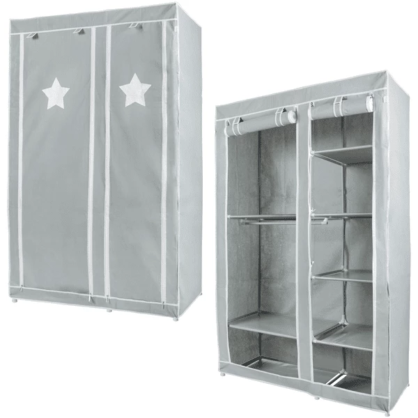 classici mobili per bambini. L’armadio in tessuto di tela grigia con stampa a