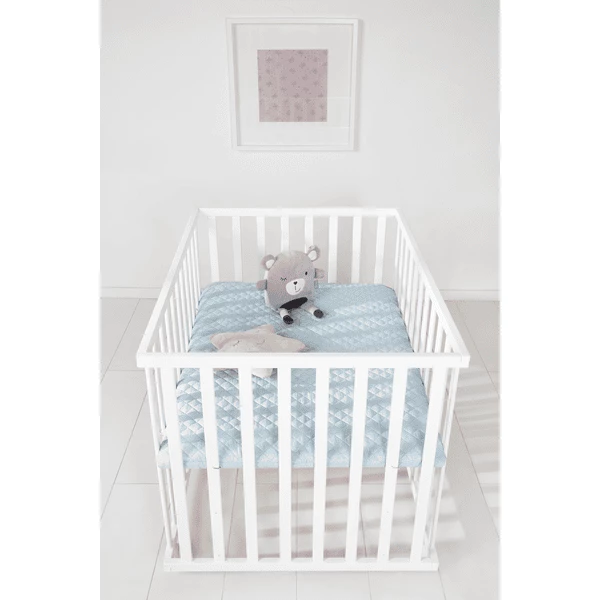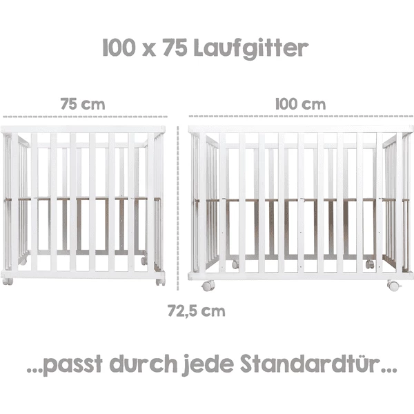 Box rettangolare con abbastanza spazio per giocare, 75 x 100 cm, e un inserto morbido.