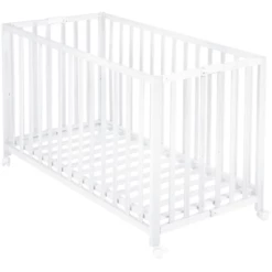Una pratica culla che si richiude per salvare spazio quando non serve. Si chiude in un attimo. Colore: Bianco Materiale: Faggio, laccato Superficie di riposo: Larghezza x Lunghezza 70×140 cm Dimensioni: Ampiezza x Lunghezza x Altezza 65x123x77 cm Doghe regolabili in 2 altezze Richiudibile 4 x rotelle