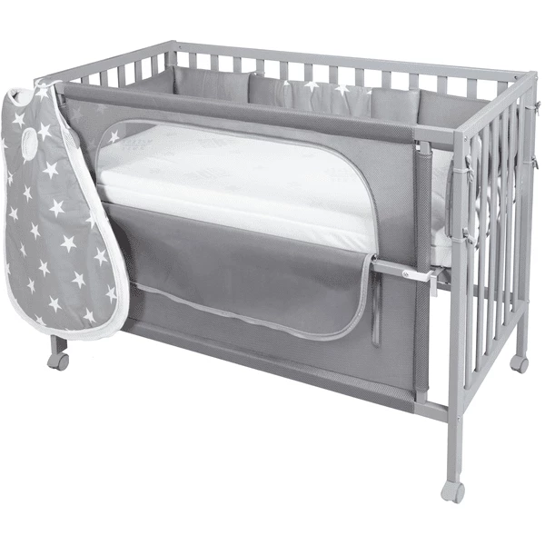 Sacco nanna Easy Air nella fantasia “Little Stars”. Scegli la misura adatta al tuo materasso nella funzione lettino co-sleeping, grazie alla regolazione dell’altezza. Il letto ha delle comode rotelline per spostarlo facilmente da una stanza all’altra. Il lettino è adatto dalla nascita fino a 35 kg.